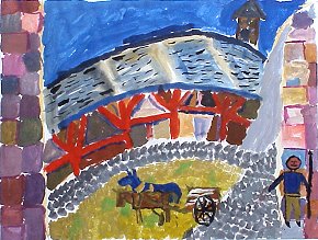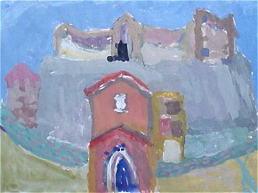 der Burg, die beim Schulfest ausgestellt wurden. Eine Jury